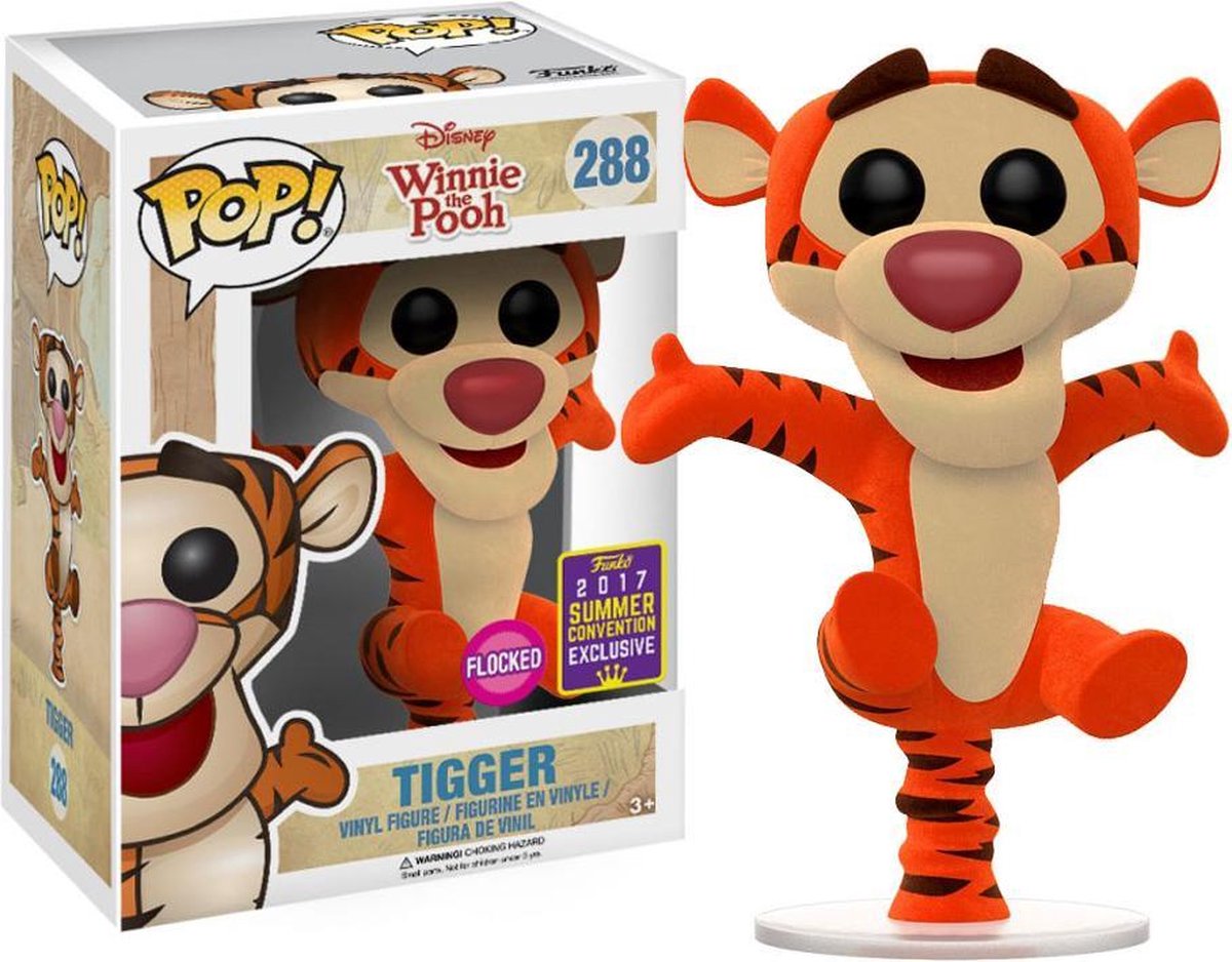 Wanneer een figuur "flocked" is, betekent dit dat in plaats van de gebruikelijke gladde vinyltextuur, de figuur is gecoat met een zachte, pluizige textuur. Enkele voorbeelden zijn Chandler in Bunny Suit of Tigger uit Winnie the Pooh. Je vindt deze producten bij onze Exclusive Funko Pop!